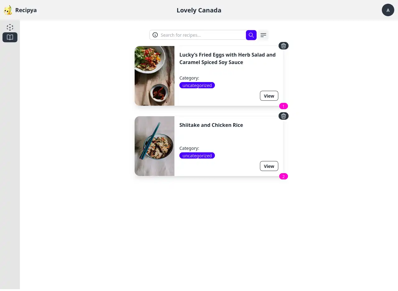 To reorder them, first open a cookbook. In the following image, we want to switch the position of the first recipe with that of the last.