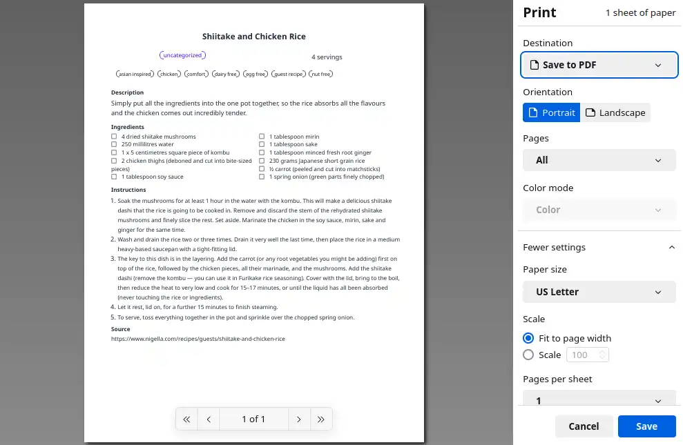 Une recette peut être imprimée selon vos préférences et votre convenance.